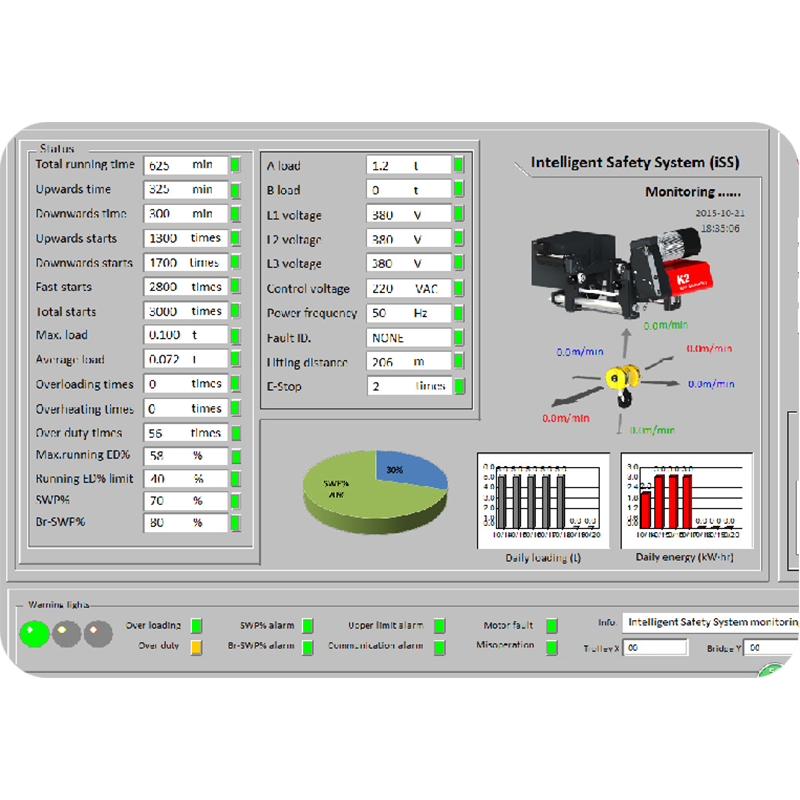 Remaining Safe Working Period (SWP%) for Hoisting Mechanism: Precisely calculates the remaining service life of the hoisting mechanism, helping users plan maintenance in advance.