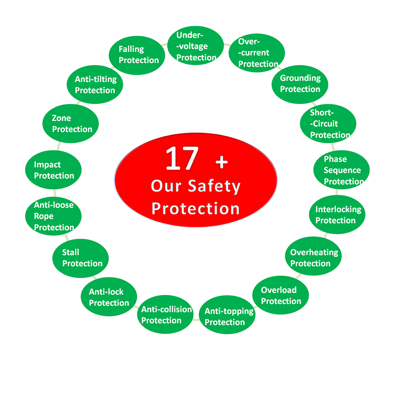 WORLDHOISTS safety monitor is equipped with comprehensive protection functions to effectively prevent various unexpected incidents: