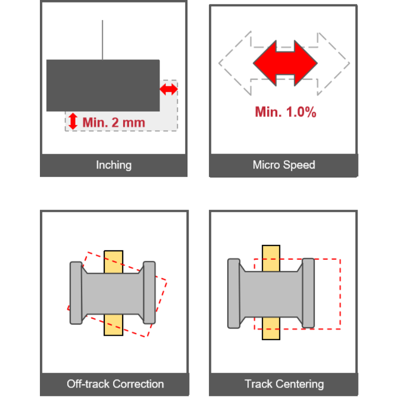 The off-track correction system automatically adjusts any deviation from the track, ensuring that the equipment always operates on the correct path.