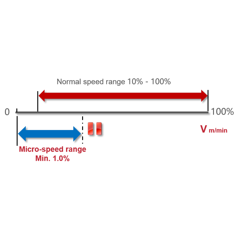 The micro-speed range can be set between 1% and 99% of the rated speed.
